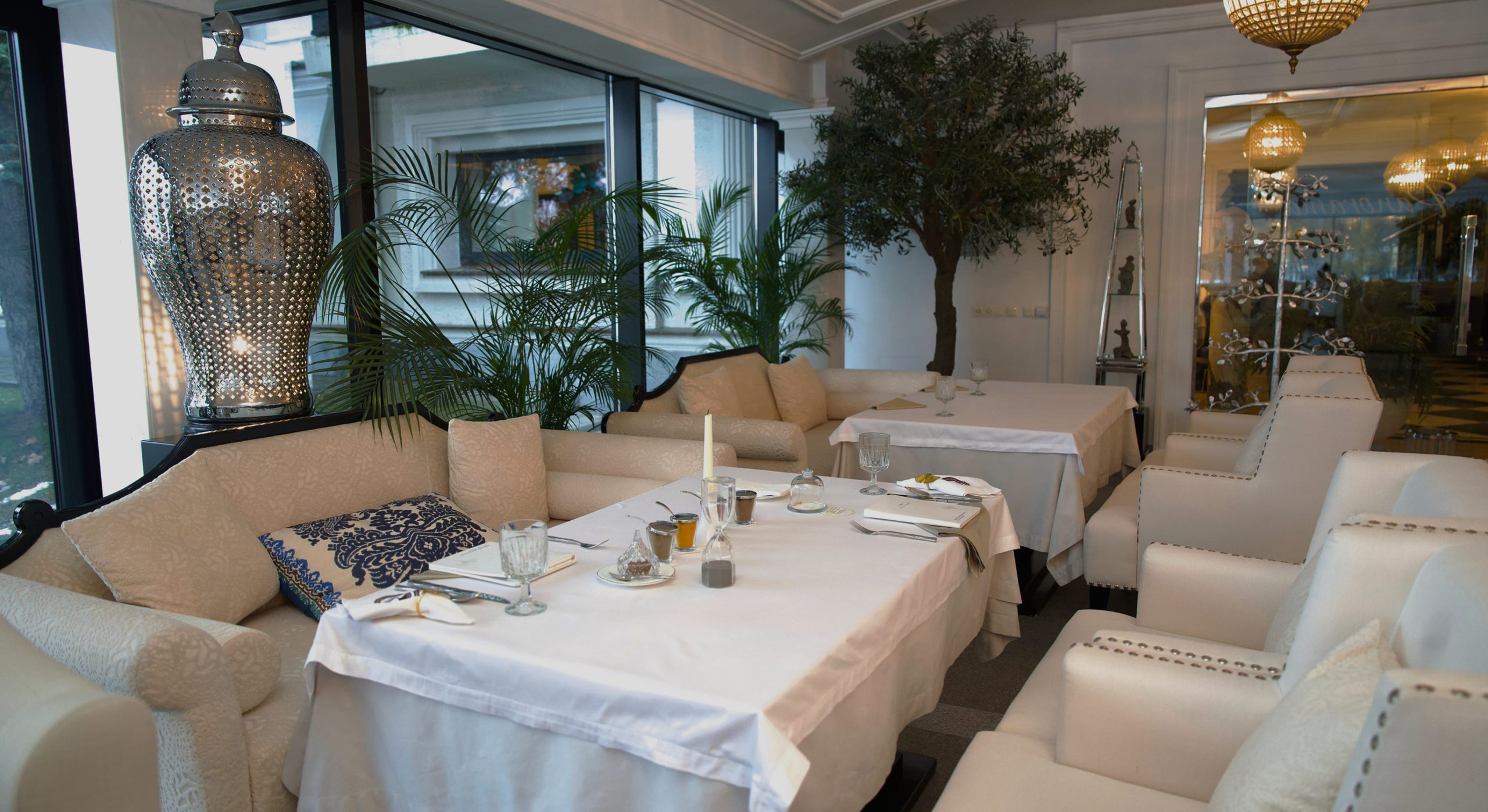 З панорамних вікон відкривається спокійна затока річки, що мерехтить у вечірньому світлі, а сам простір дихає легкістю, світлом і стриманою елегантністю. ЕДЕМ — ресторан, що поєднує легкість середземноморської кухні, французьку вишуканість та українські традиції, інтерпретовані з глибокою повагою до продукту та моменту.