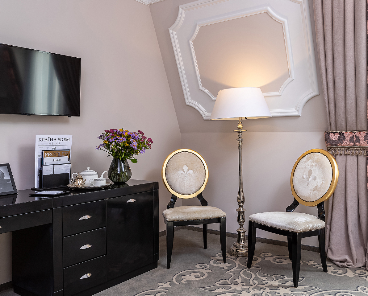 Стримана класика в поєднанні з комфортом - саме так має виглядати готель 5 зірок. Номер Суперіор, розділений дверима з можливістю конекту. Місце, де відчуваєш затишок і спокій.